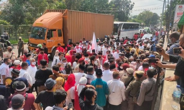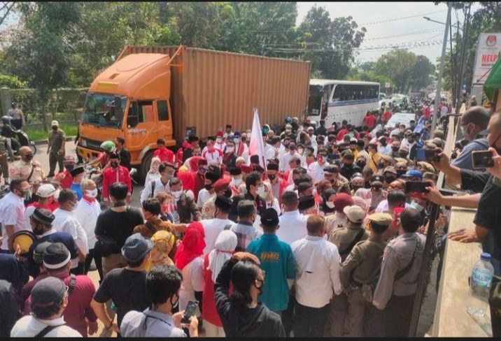 Sebelumnya, ratusan masa pendukung bakal pasangan calon Muhamad-Sara sempat berkerumun di depan Gedung KPU Tangsel.