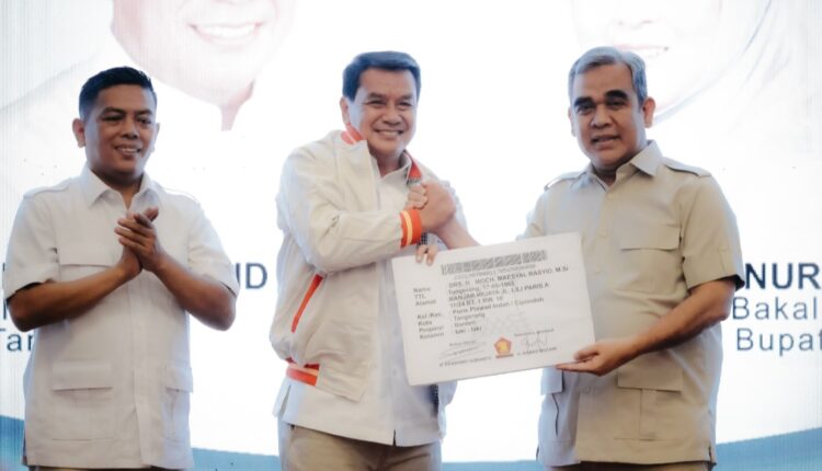 TANGERANG – Bakal calon Bupati Tangerang, Maeyal Rasyid resmi menjadi kader Partai Gerindra Kabupaten Tangerang. Demikian ditandai saat dirinya menerima kartu tanda anggota (KTA) partai Gerindra.