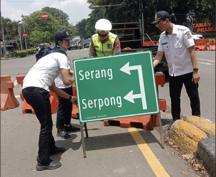 Jelang Arus Mudik Lebaran 2026, Pemkot Tangerang Mulai Pasang Rambu Penunjuk Jalan Portable