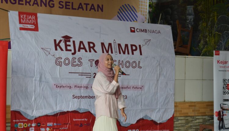 TANGERANG SELATAN – Komunitas Kejar Mimpi Tangerang Selatan (KMTS) yang diinisiasi oleh CIMB Niaga sukses menyelenggarakan roadshow melalui program Kejar Mimpi Goes to School (KMGTS), salah satunya di SMPN 6 Kota Tangerang Selatan.