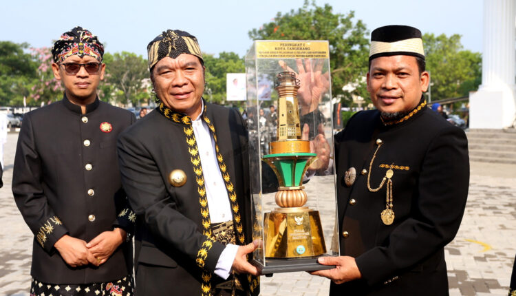 TANGERANG – Pemerintah Kota (Pemkot) Tangerang kembali mendapat penghargaan di tahun 2024. Kali ini, penghargaan diraih yaitu Peringkat I Kategori Kota Inspiratif dan kategori Dukungan Pimpinan Daerah Terbaik Hasil Penilaian Kinerja Delapan Aksi Konvergensi Percepatan Penurunan Stunting Provinsi Banten tahun 2024 pada peringatan Hari Ulang Tahun (HUT) ke-24 Provinsi Banten tahun 2024. Penghargaan diserahkan di Kantor Gubernur Provinsi Banten, Jumat (4/10/2024).