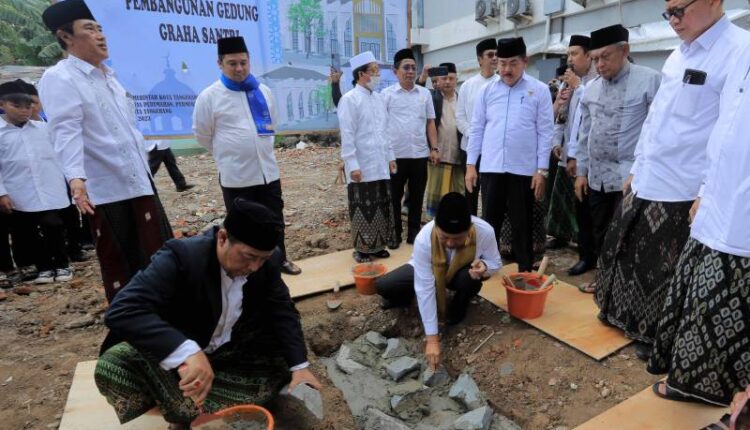 TANGERANG – Bertepatan dengan peringatan Hari Ulang Tahun (HUT) Kota Tangerang yang ke-30, Pemerintah Kota Tangerang (Pemkot) bersama sejumlah pemuka agama di Kota Tangerang meresmikan secara simbolis pembangunan gedung Graha Santri 2210 yang ditandai dengan peletakan batu pertama oleh Wali Kota Tangerang, H. Arief R Wismansyah di lokasi pembangunan yang berada di kawasan Masjid Al-Azhom Kota Tangerang, Selasa (28/02/2023).
