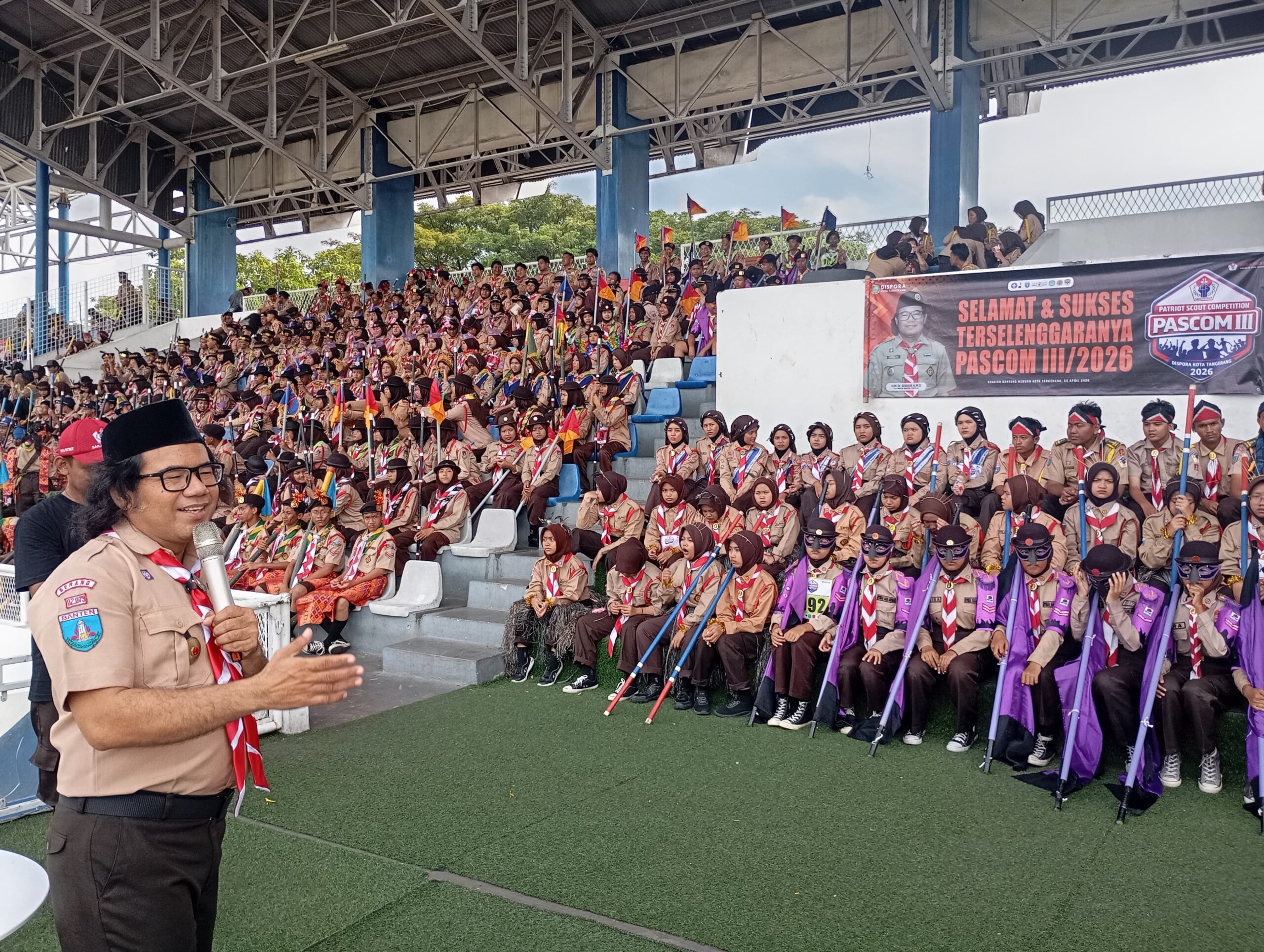 TANGERANG – Ketua Kwartir Daerah (Kwarda) Gerakan Pramuka Banten, Suwaib Amiruddin, menghadiri sekaligus menyapa ribuan peserta dalam kegiatan Patriot Scout Competition (Pascom) III Piala Wali Kota Tangerang yang berlangsung di Stadion Benteng Reborn, Sabtu (25/4/2026).