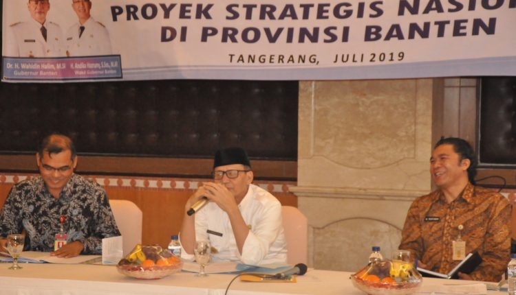 TANGERANG – Dalam rangka mempercepat progres pembangunan Proyek Strategis Nasional (PSN) di Provinsi Banten, Gubernur Wahidin Halim melakukan rapat koordinasi bersama bupati/walikota dan unsur pelaksana teknis pembangunan seluruh PSN, bertempat di Istana Nelayan, Kota Tangerang, Kamis (11/7/2019).