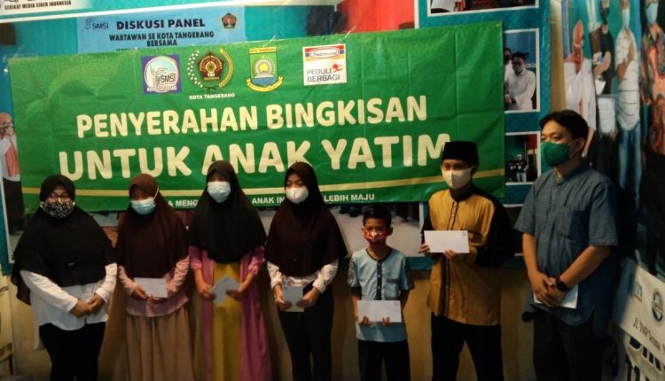 TANGERANG – Persatuan Wartawan Indonesia dan Serikat Media Siber Indonesia (SMSI) mengadakan santunan Anak Yatim bersama Indomart di Sekretariat Bersama PWI-SMSI, Jum’at (07/05/2021).