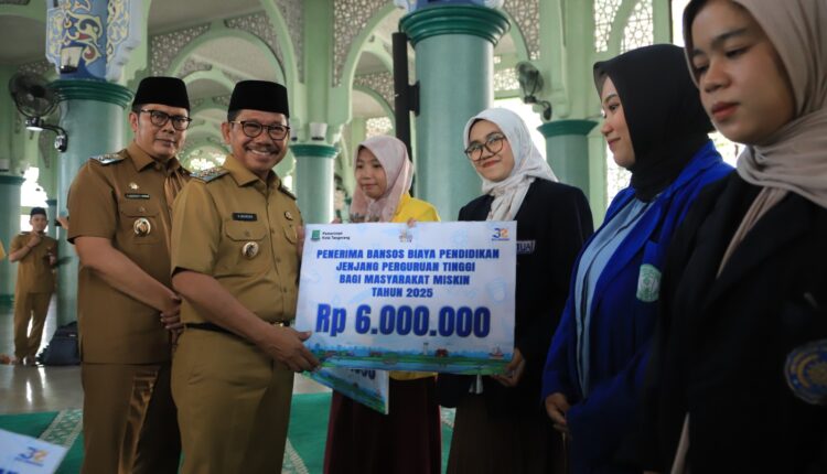 TANGERANG – Pemerintah Kota (Pemkot) Tangerang melalui Dinas Sosial (Dinsos) merealisasikan program Gampang Sekolah, melalui penyaluran Bantuan Sosial Biaya Pendidikan Jenjang Perguruan Tinggi ke 312 mahasiswa kurang mampu atau miskin, pada anggaran murni Tahun Anggaran 2025.