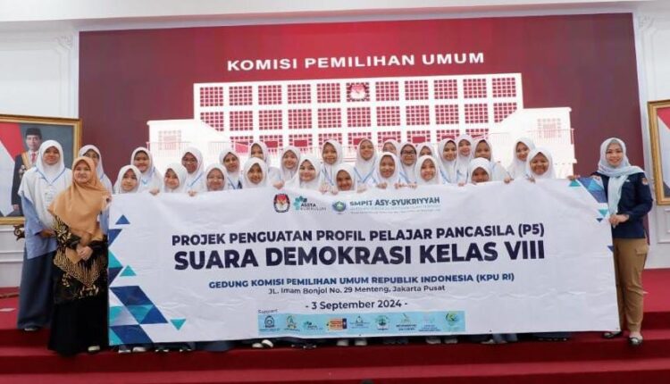 JAKARTA – SMPIT Asy-Syukriyyah mengadakan kunjungan edukatif ke Komisi Pemilihan Umum Republik Indonesia (KPU RI) di Jalan Imam Bonjol No. 29, Menteng, Jakarta Pusat, Selasa, (3/9/2024).