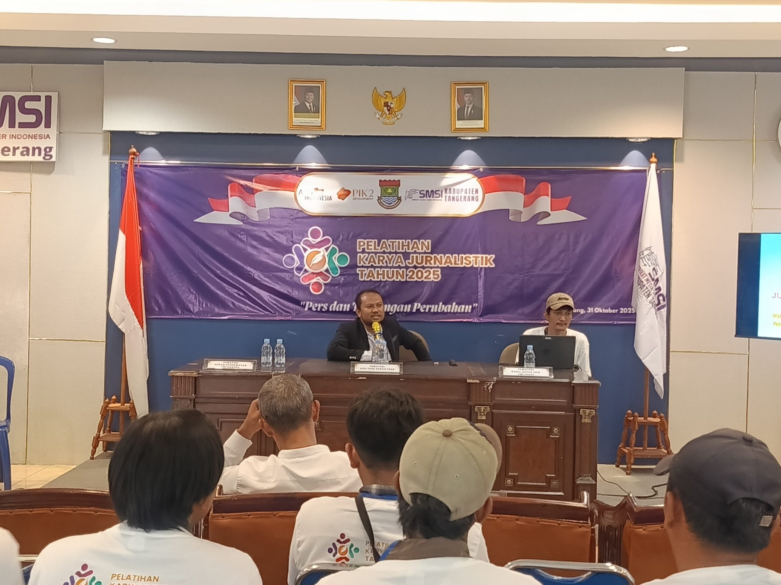 “Jawabannya, rilis itu gak mungkin berimbang. Harusnya wartawan mengejar sumber lainnya,” tegas Ichan, sapaan akrabnya, saat menjadi pemateri dalam Pelatihan Karya Jurnalistik Tahun 2025 yang digelar oleh Serikat Media Siber Indonesia atau SMSI Kabupaten Tangerang, di Sekretariat Bersama SMSI Kota Tangerang, PWI Kota Tangerang, dan Jurnalis Tangerang Raya (JTR), pada Jumat (31/10/2025).